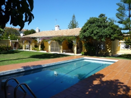 ATLAYA BAJA: Rustic house in a nice position behind the hotel Atalaya Park on the beach side. The plot is flat and nicely maintained, there is a big swimming pool and a storage and place for two cars...