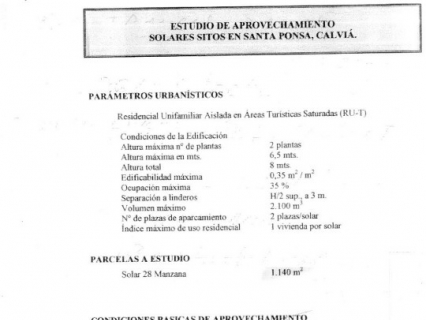 For sale in Santa Ponsa plot of 1.140 m2., With possibility to build one detached house up to 399 m2., With a volume of 2.100m3., With a maximum height of 6.5 meters and two floors, total height 8 met...