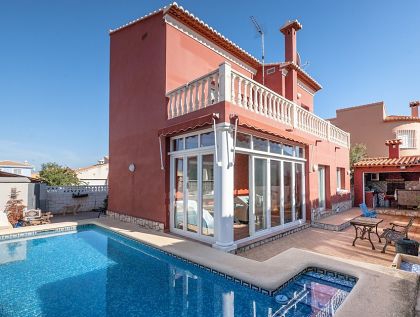 This large 4 bedroom, 2 bathroom detached villa has its own private pool and outside barbecue and summer kitchen area. The property is conveniently located just a 5 minute walk from the restaurants an...