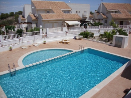 Lovely semi detached 2bed/2bath fully furnished south facing villa with communal pool overlooking park area and with extensive lake and countryside views in Ciudad Quesada. Downstairs comprises of a s...