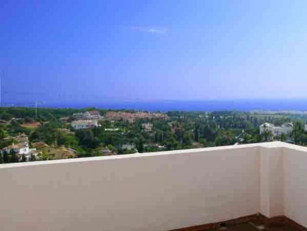 South facing property with stunning sea views.Located in the prestigious area of Marbella Hill Club this property offers south facing views to the sea. This corner townhouse is distributed as follows: entrance hall, guest toilet, fully equipped kitchen with access to the patio, living room with fireplace and open access to the south facing terrace and a separate dining room. On the first floor there are two spacious bedrooms with stunning views of the coast, each with bathroom en-suite and a private terrace. On the lower level, there are two guest bedrooms en-suite, one of them with private terrace. Private garage for two cars plus space for a golf buggy and the possibility to convert part of the basement into an apartment for guests or for the service.The private plot offers space for the construction of a private pool in addition to the communal pool. The property from 2000 is equipped with air conditioning cold-hot, marble flooring