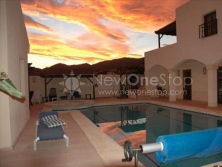 This stunning 6 bedroom, 6 bathroom villa situated in Bedar, with views you just cannot described and really must be seen to be appreciated. Entrance drive to front terrace, large entrance hall, spacious living-room with marble fireplace, fully fitted kitchen leading to rear walled terrace with outside kitchen BBQ area. The master suite is accessed from the entrance hall via an attractive curved staircase and comprises: large bedroom with balcony and terrace, a spacious en-suite bathroom with separate shower. An annexe off the swimming pool terrace provides large pool housing, workshop/store, shower room and a utility room. A side staircase leads to guest accommodation of two bedrooms and a terrace. The swimming pool is heated with a separate Jacuzzi feature. The property has air conditioning and oil-fired central heating. Build size of 260 m2, plot size 10,000m2 This has to be one of the most desirable Villas in the Bedar area and a must see opportunity for those looking for a large quality built villa