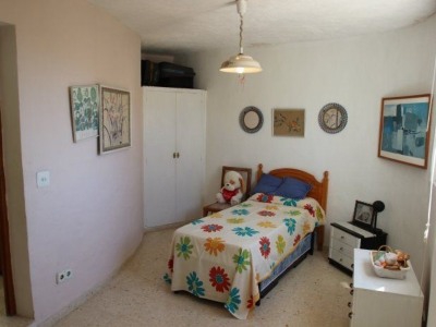 A duplex villa with nice sea views situated in a quiet cul-de-sac 1km from Calpe centre. The property benefits from a large and sunny 1126m2 plot, and is distributed over two floors to give a total of 4 bedrooms (2 main floor + 2 lower floor apartment), two bathrooms, two kitchens (independent above and American with a bar below) and two living dining rooms (beamed ceiling and fireplace above) opening on the upper floor to a sunny glazed terrace with lovely views to the Mediterranean. The villa includes a laundry room, store room, swimming pool terrace (new 8x4m pool with Roman steps) and a car port. Gas central heating and air conditioning throughout