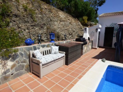 overview : Stunning open plan 4 double bedroom, 2 bathroom villa situated in the countryside in a quiet peaceful location, within easy walking distance of Competa. South facing aspect with views of the mountains and countryside, the property benefits from several outdoor areas where you can enjoy full sun all day. The property is immaculately finished inside and out and benefits from a new septic tank, guttering and a 10,000 litre water deposit. Secure access onto the property via electronic gates with intercom and camera. It would make an ideal property for full time residence, holiday home or rental as the property is currently a successful licensed Casa Rural. description : Key features • Spacious accommodation • Immaculate presentation • Pool area and terraces • Mountain and countryside views Situation and Outside space Located in the countryside the property is accessed from a tarmacadam road, where electronic gates take you onto a large gravel area with a car port (3.0m x 3.0m) and detached garage (4.5m x 2.5m). The 3000 m² of flat usable land surrounding the property is well maintained with mature established plants, shrubs and an abundance of fruit trees. The property benefits from several areas around the villa which make it ideal for al fresco dining and taking in the sun all day, steps take you to a further terrace with seating beneath a pergola providing the ideal place for taking in the distant sea views towards Malaga. A large pool area with plenty of space for sunbathing, an area for barbequing and the added advantage of a choice of 2 covered terraces. In addition the property has several areas all ideal for outside dining. Living space Access into the property is from a covered terrace (4.0m x 3.0m) into a large bright sun lounge that leads you into a spacious open plan living/dining/kitchen area with air conditioning, modern ceiling fans and a modern log burning stove. The comprehensive kitchen is fitted with high quality units and integrated white goods. The property benefits from double glazed units fitted with fly screens and shutters. An archway takes you to the master bedroom and second bedroom, which at present is used as a single but could easily accommodate a double bed: • Master bedroom (3.7m x 3.5m) with fitted wardrobes, air conditioning, ceiling fan and an en- suite • En suite shower room (3.3m x 1.4m) fully tiled with a large walk in shower • Double bedroom 2 (3.5m x 3.2m) with fitted wardrobes and ceiling fan A doorway accesses into a hall (4.9m x 1.2m) that leads to a further 2 bedrooms and family bathroom: • Double bedroom 3 (3.5m x 3.2m) with fitted wardrobes, ceiling fan • Double bedroom 4 (3.5m x 3.0m) with fitted wardrobes, ceiling fan • Family bathroom (2.5m x 2.2m) fully tiled with bath and shower over Plot size: 3,043 m² approx Living space: 175.33 m² approx (constructed) Bedrooms: 4 Bathrooms: 2 Living room: 9.2m x 4.8m Kitchen: 3.6m x 3.2m Air conditioning: fitted in lounge and master bedroom Pool: 8.0m x 4.0m Garage: 4.5 x 2.5m Telephone: no, but has a wireless broadband internet connection Electricity: yes Water: yes Additional info: sun lounge - 6.7m x 3.7m Mortgage: possible to apply Energy Performance Certificate: D