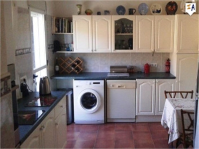 This stunning country villa is for so many reasons the perfect property for someone wanting a rural location to soak up the sun and the amazing views of the countryside, but also for its condition - perfect; the location - perfect; There is just under an acre of land that has many fruit trees. Outside there is a large swimming pool and many terraces to relax and enjoy with a nice outside kitchen area with BBQ. You enter the property off a good track via double gates, to a large parking area. The land is fenced all around so very safe for pets and children. Inside the house there are 3 bedrooms - one is on the 1st floor, two are on the ground floor One is currently used as a sitting room with double doors out to the pool. The kitchen is fully fitted with high quality furnishings with an archway through to a lovely sitting room with dining area and log burner which heats the whole house. The house also has central heating installed. Open plan stairs take you to the 1st floor bedroom. There is a full bathroom too on the ground floor plus a 2nd shower room accessed just outside but could easily be linked to the house. It is also possible to extend the upper floor to create a 3rd bathroom as en-suite to the bedroom there. There is a lovely feel to this property which is ideal as a family home and just perfect for holidays and would rent well. Some of the high quality furniture are included in the sale. The property has good access and just 10 minutes from the local town and also not far from the main town of Loja. This has to be viewed if you are looking for a perfect country home.